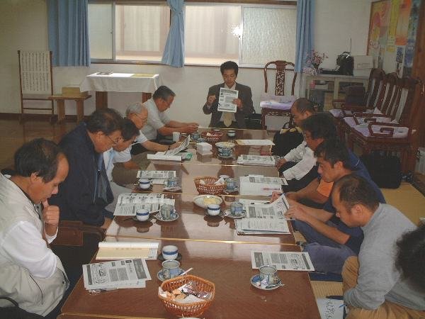 ↓ 2004・10・4 3組例会にて「時報手配り説明会」 道友社・中川氏 (南美都分教会)