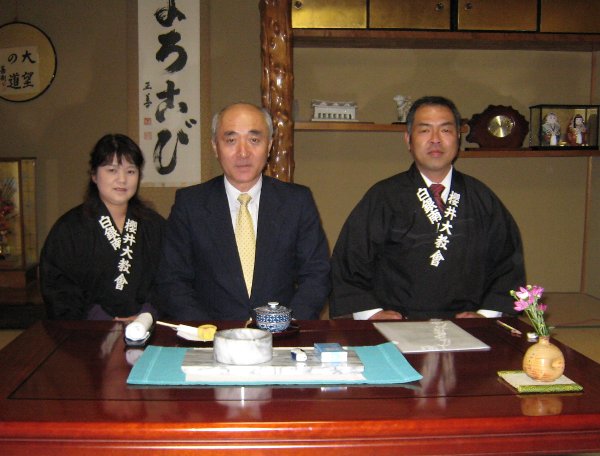 ↓ 秋野本分教会 左から 長女さん、会長さん、先生、奥様(2007.3.13)