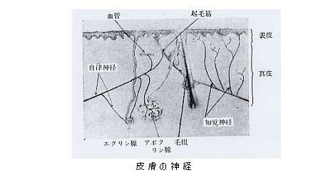 ◇皮膚には知覚をつかさどる知覚神経と、血管や立毛筋、汗腺の働きをつ