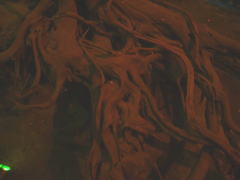縦8m,横16m,深さ2.5mという大きなプールの中に大きな樹根がありました。海中から発見されたそのままの状態で保存されているのです。説明によると,この海底から水温の低い真水が湧き出ているために,こんなに良い状態で保存されたのだということでした。2000年前に生えていた木がそのまま残っているということに驚きました。階下に降りると,プールの側面から見ることができます。