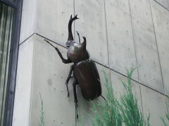 | 1 昆虫館壁面のカブトムシ | 2 日時計はトンボです | 3 木の葉そっくりです |