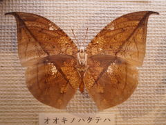 前に孫と行ったとき,「これすごいね。ほんとにフクロウだ」と驚いたエウリロクスフクロウチョウ,今見てもやっぱりすごいと感心します。オオキノタテハは木の葉そっくりです。展示室を一巡した後,放蝶温室に入りました。5月初めの数は667匹と書かれていました。いじめる人がいないからかゆったりと飛んでいます。じゅうぶんに歩き回ってから館長補佐にお会いできました。「蝶の数はどう数えているのですか」と訊くと「羽化させた数が分かっていますから,減った分を引けば分かります。羽化させた日は1匹1匹に書いてありますから」とのことで,もう一度,放蝶温室に戻りました。なるほど,数字が書かれています。写真に撮りました。