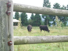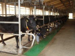 広大な敷地のみつえ高原牧場を見学し,いろいろと質問をして教えてもらったあと何枚か写真を撮りました。放牧されている牛は3頭見つけただけでした。「この牛は何時ごろまで放牧しておくのですか」とお尋ねすると,「あの」牛たちは当分外で暮らします。自由に遊び,自由に寝転がって生活し,草を食べて暮らすのです」ということでした。なんと3か月もの自由生活なのだそうです。