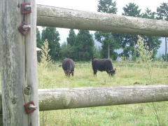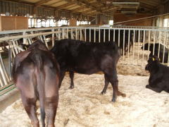 みつえ高原牧場は敷地が68ha もあり,ここで300頭ほどの牛が飼育されています。そのうちホルスタイン種が50〜60頭,あとは黒毛和牛ということでした。