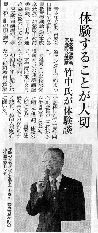 平成21年11月17日(家庭教育講座で「これからを生きる子どもたちへ」と題してお話,奈良新聞で紹介されました。)