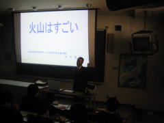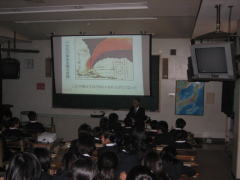 平成21年12月5日(平群東小学校で「火山と岩石」の授業をしました。とても一生懸命に話を聞いてくれました。)