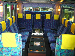 正シート45人、後部座席が2列回転します。足元も広くスーパーハイデッカーなので展望もよく、豪華さがきわだちます。
