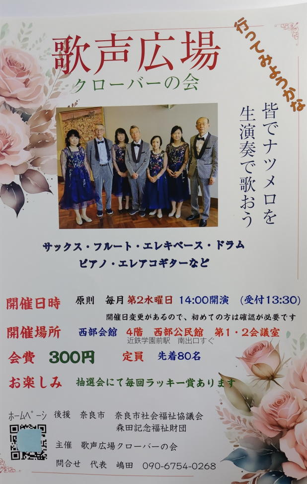 毎月のたのしい歌声を生バンド演奏で楽しみましょう