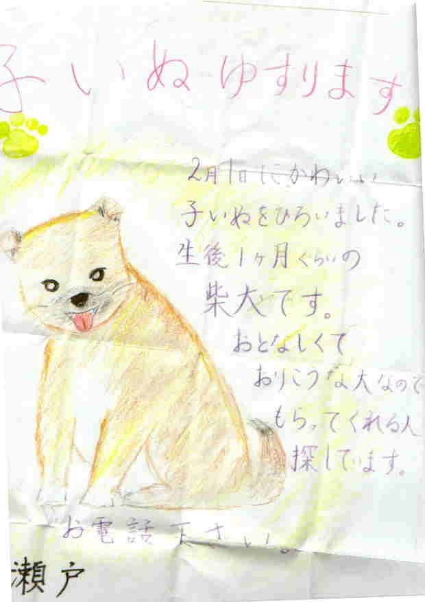 | インターネット以外にもポスターまで作って里親探しして頂いていました。 |