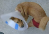 12/11 今日は、病院に行きました。 足のところのハゲは、うっすらと毛がはえてきてるので、 大丈夫とのこと。 胸のところは、まだ毛がはえていないけど、もう少し薬浴を続ければ 大丈夫でしょうとのこと。 よかったです!! でも、いつものように、エリザベスカラーをつけられちゃった。 ・・・ のんは、今生理・・・ 可哀相に、気になるけど、舐めることができないので、 くるくるその場で廻ったり、座り込んだり。 仕方ないから、おパンツを履かせましたぁ。。。 |