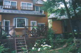 | WANWANパークで遊んだ後は、いろんなお店を回って、今晩の宿泊先「銀の道」へ。 涼しげな森の中に、無数にペンションがありました。 「銀の道」には、コテージがあり、私達は、そこを借りきりました。 ご飯もとてもおいしく、涼しいし最高でした。寝るのも犬と一緒。 犬の足洗い場や、ウンチ入れ、消臭剤なんかも置いてくれてありとても助かりました。 のんちゃんは、普段一緒にネンネできないので大喜び!夜中あくに擦り寄ってきました。 |