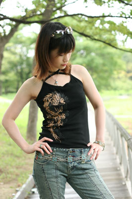 右→2着目。アルゴンキンのドラゴンキャミ&シスコ製ズボン。ターコイズのチェーンもシスコやったかな…。