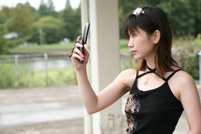 「カレシにメール、ポチポチポチ…→はい、送信〜ん、飛んでけー!」