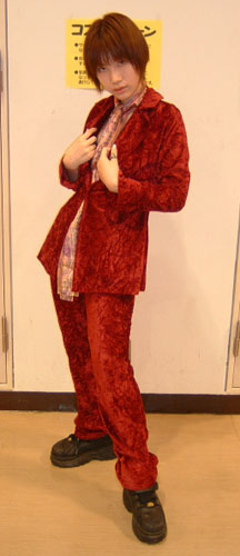 素肌にマフラー+赤紫色のスーツ…って、完璧パクリやんな!(笑