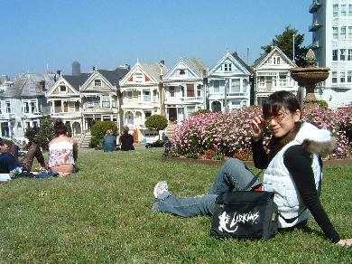 帰りはMUNIを使わずに歩いて帰りました。あの有名な公園Alamo Squareでちょっと休憩。