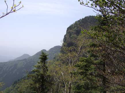 遠くに大普賢岳が見えてきます。黄砂の影響か少しかすんでいますが、ずい分遠いなぁ〜、今日はあそこまで行く予定です。