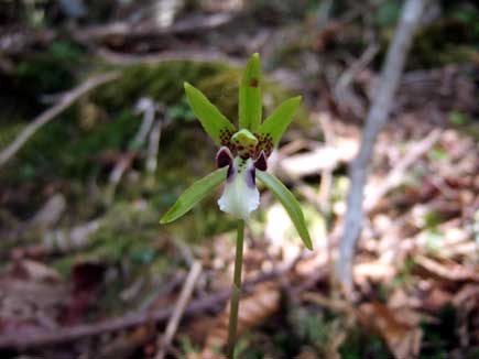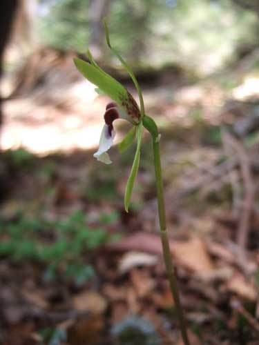 思わぬ花に出会いました。イチヨウラン、1枚の葉に一輪の花が凛と咲いています。横顔も美しい!