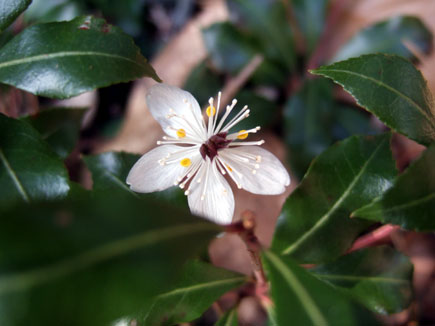 山頂から30分ほど下り、玉置辻(本宮辻)で今日の行程は終わりバスが待っていてくれます。玉置辻付近で咲いていたバイカオーレン、とってもかわいい花で「森の妖精」と呼ばれています。大きな杉の下に咲く小さな小さな妖精たちです。