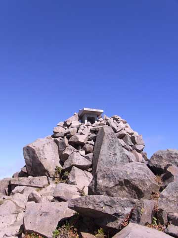 山頂は岩の積み重なりでテッペンに磐梯神社の小さなとても可愛い祠があります。