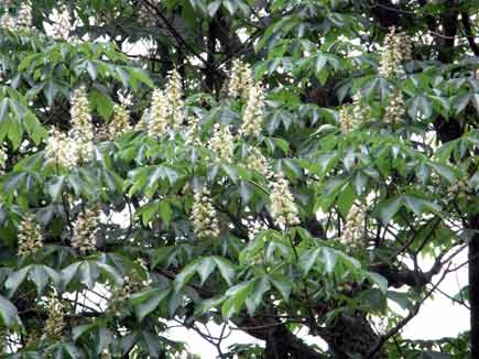 トチの花は大木に上向きに白い花をたくさんつけます。
