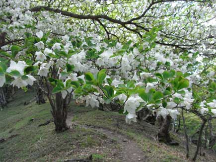 シロヤシオは満開から散り初め状態で稜線上は白い道になっていました。