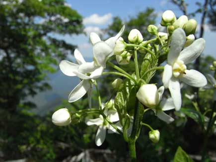 今回初めて出会ったシロドウダン、花が小さく、その上足場が悪くうまく撮影出来ません。やっとこの程度。