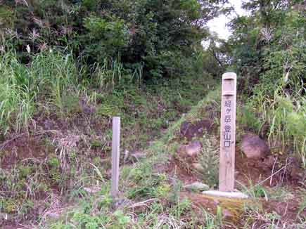 保月山までは樹林の中で面白い木がありました。まったく別種の大木2本がからみ合っていて「アダムとイブの木」と名付けられています。名前を記した看板がなくなってしまったので見つけたら連絡下さいとはり紙してありました。よほど由緒ある看板なのかな。