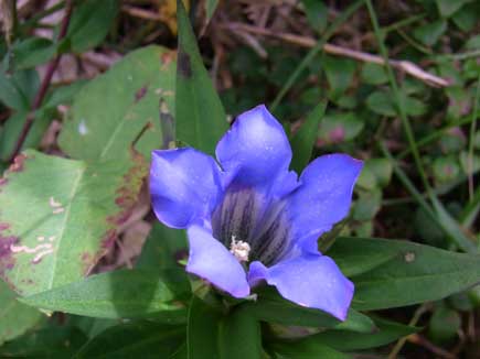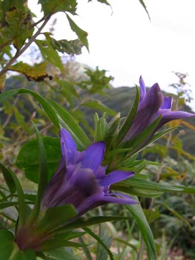 足元にはリンドウの花。