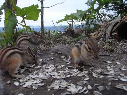 可愛いシマリスが大忙しで食事中です。