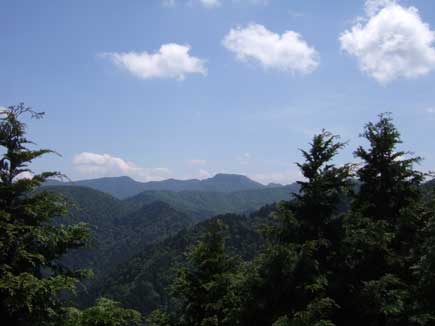 山上ヶ岳、稲村ヶ岳、阿弥陀ヶ森、白鬚岳、大台ヶ原、台高南部の山々など好展望です。