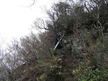 この先、しばらく梯子やロープ、ヤセた岩場など続きスリリングです。梯子、ロープはとてもしっかり整備されピンと張られたロープを見ると気合が入ります。