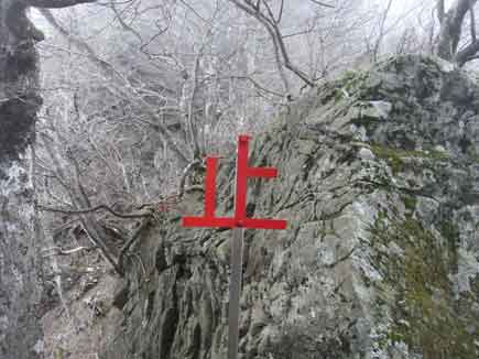 ガスが流れて瀬戸内海まで見えた時もありました。樹林に入ったり出たりは良いのですが、何しろ強風で寒く、上るにつれてガスも濃くなり途中出会った方が笹ヶ峰山頂はガスで何も見えず強風で寒いからすぐ引返して来たとおっしゃっていました。(;´`)
