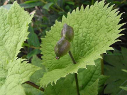 シラネアオイはもうしっかり結実してこんな変わった形↓です。たくさん咲いていたのでしょう、実もたくさんなっています。