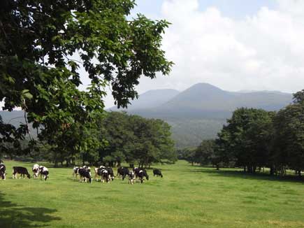 いつものことですが下山するとこんなに良い天気で、朝はそんなにいなかった牛さんがいっ〜ぱい、のんびり尻尾をふりながら草を食べていました。