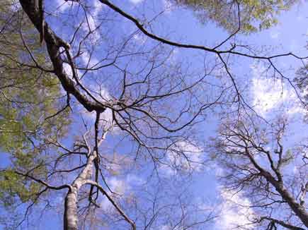 快晴の青空で絶好の春山日和です。犬挟峠からいきなり階段状の急登ですが、瑞々しい新緑に目を奪われているうちに雲居平に着きます。
