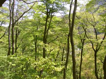 下りは元谷経由で大山寺へ下ります。山麓のブナ林がどんなに美しかったか、全てを緑に染めて空気も緑です。