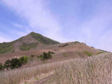 絶景、絶景!です。明るい笹原から均整のとれた下蒜山が鎮座して風爽やか、穏やかでメルヘンティックでとても心地良いところです。大勢の人が上っているのが見えています。