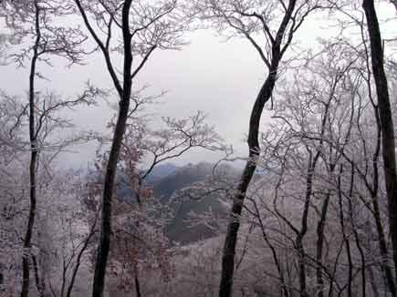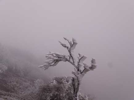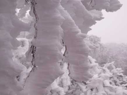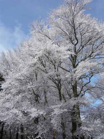 雲をかき分けるように青い空が覗いた一瞬 霧氷が輝き ![]()