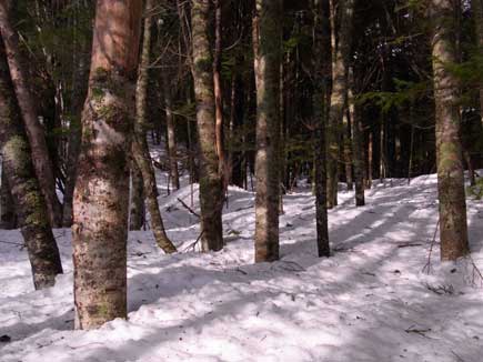森の中は野うさぎの足跡が点々とカーブを描いて ![]()