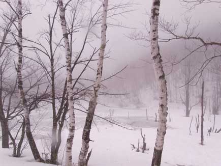 凍える木々に朝霧がベールをかけて 何も動かない「白い静」