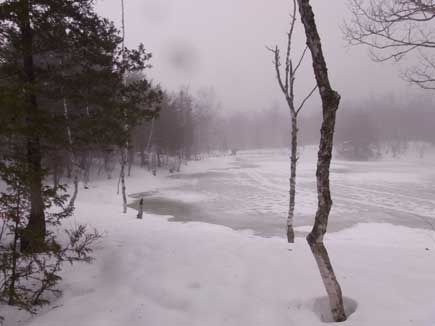 あざみ池は半分凍り淡いブルー