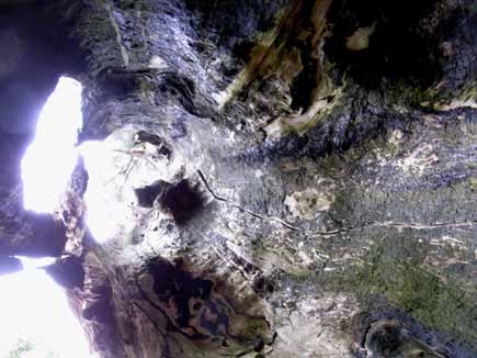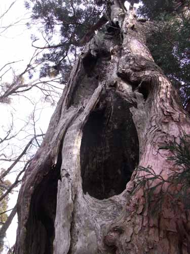 雷杉(落雷で焼けて大きな空洞になっても生き続けている)