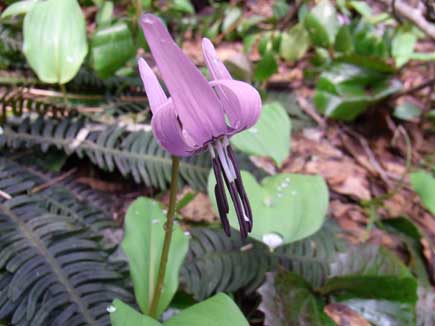 そこここにカタクリが…ヒトリシズカが…、チゴユリが…、エンレイソウが…、土が肥沃なのでしょうか、どの花も非常に大きく、緑濃く鮮やか、それでいて大群生なのです。