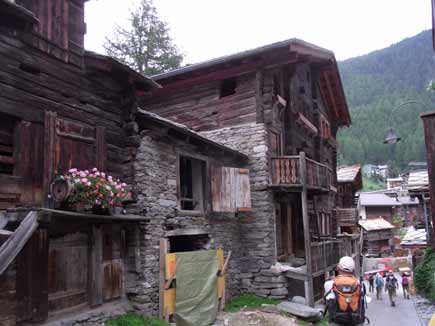 ツェルマットに帰ります。花いっぱい、大賑わいのツエルマットも一つ路地を入ると古い穀物庫や家畜庫?などが保存されています。