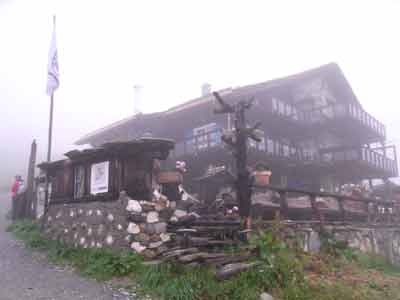 シュワルツゼーは生憎小雨と風強しで雨具を着て出発します。この後青空とガス、小雨がわずかな時間に変化します。