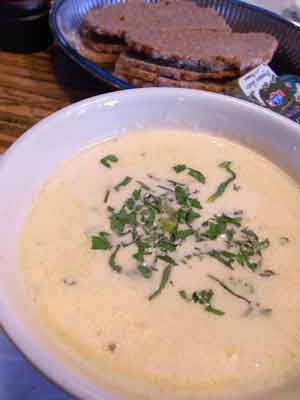 (オードブルは自家製チーズ・・・スープは干し肉入りポタージュ)