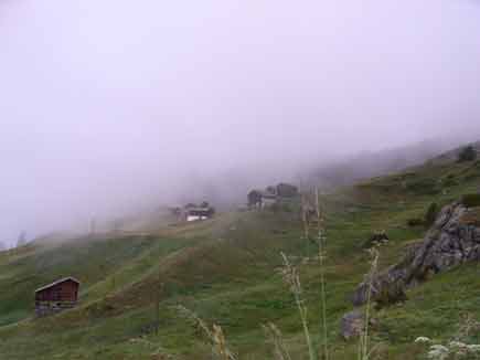シュバレンバッハ小屋を過ぎてゲンミ峠は白い雲の下です。
