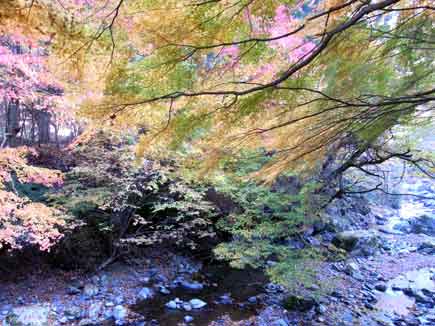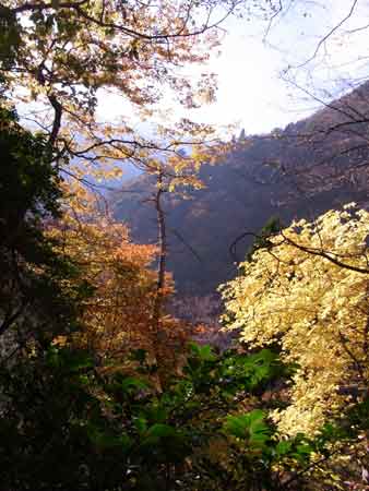 坊村から明王谷林道は目の覚めるようなあでやかな紅葉です。