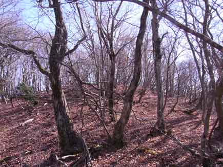 小休止して次のピーク烏谷山へは植林と自然林の境界尾根を行き、30分ほどで好展望の烏谷山です。