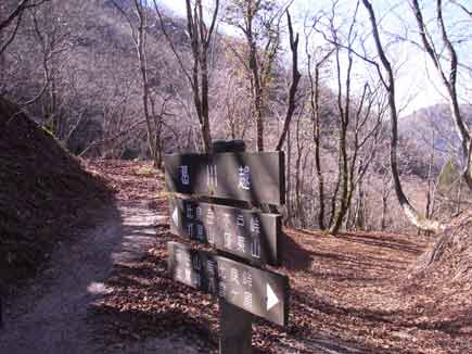 林道を詰めて牛コバから大橋・南比良峠→の標識に従って山道に入ります。
